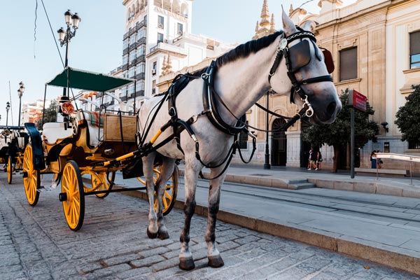 Discover the authentic Seville with our exclusive horse-drawn carriage tours! Tour the cobblestone streets of the historic center, admire the majesty of our monuments, and enjoy the charm of Plaza de España from an elegant carriage pulled by our well-kept Andalusian horses.